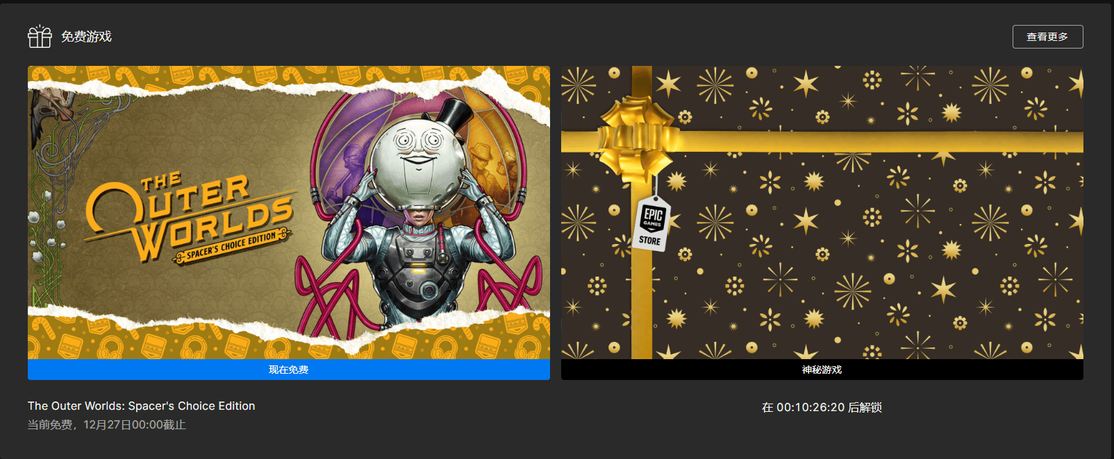 Epic游戏商城17发跨年免费游戏领取现已更新,免费游戏为《天外世界:太空人之选》