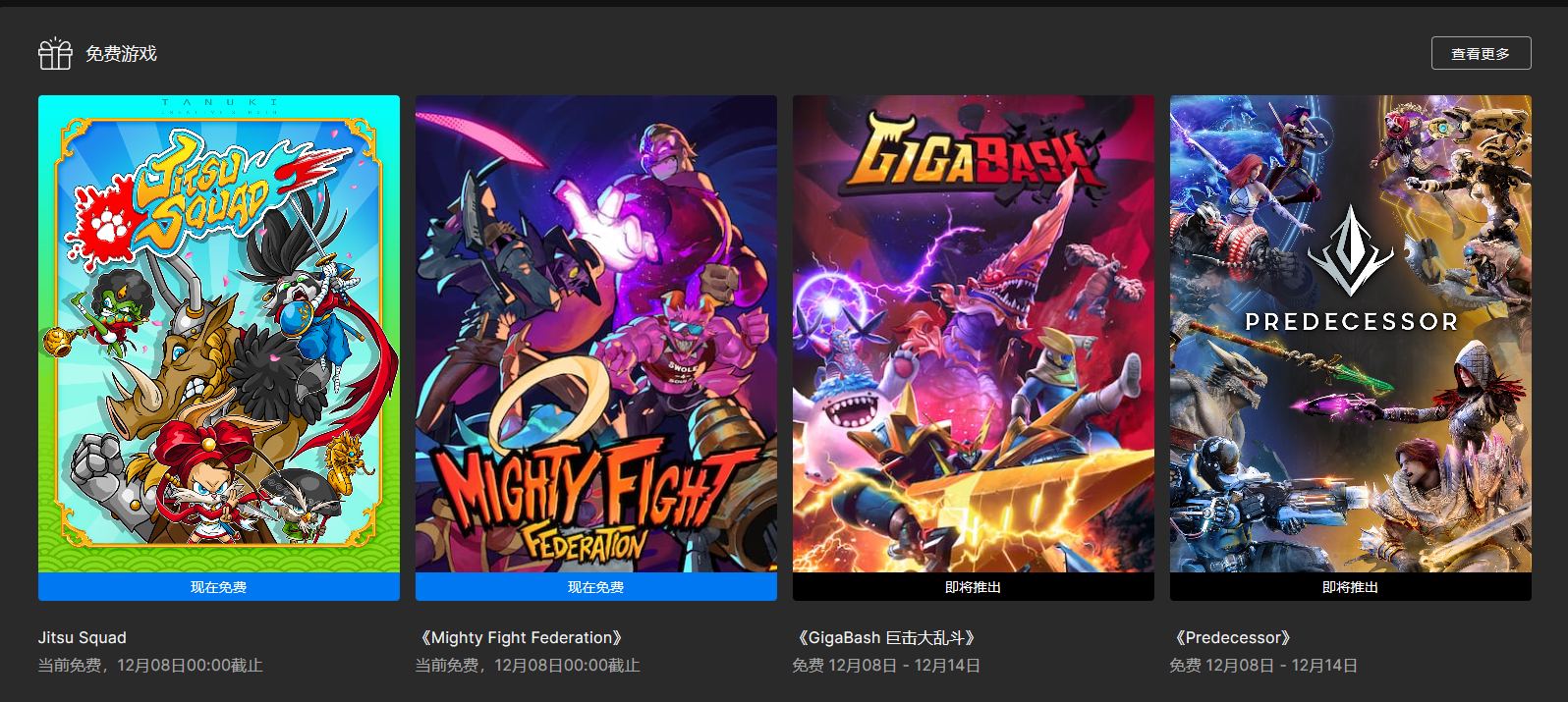 Epic游戏商城本周免费游戏领取现已更新,免费游戏为《Jitsu Squad》和《Mighty Fight Federation》